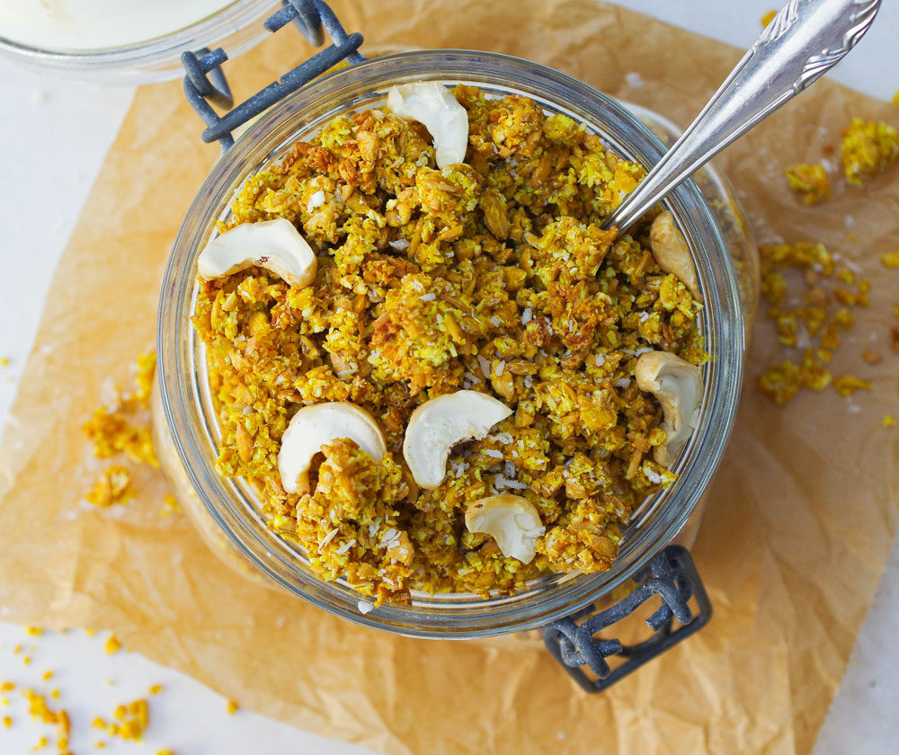 Dieses Golden Granola schmeckt wie Sonne zum Frühstück. Aus einer Handvoll Zutaten kannst du dir im Handumdrehen dieses besondere Knuspererlebnis zubereiten. Alles was du dafür brauchst, sind Vollkornflocken, Tahini, Honig, Kokosflocken , Kurkuma und etwas Apfelmark. Die Zutaten lassen sich auch vielseitig abwandeln, sodass du in deinem Vorratsschrank bestimmt immer alles findest, was du brauchst, um dieses Granola nachbacken zu können. In diesem Artikel teile ich wertvolle Tipps zur Zubereitung, Ideen für leckere Alternativen und ein paar persönliche Gedanken dazu, was Frühstücken für mich bedeutet. Schön, dass du hier bist – ich wünsche dir viel Freude beim Lesen und Ausprobieren.