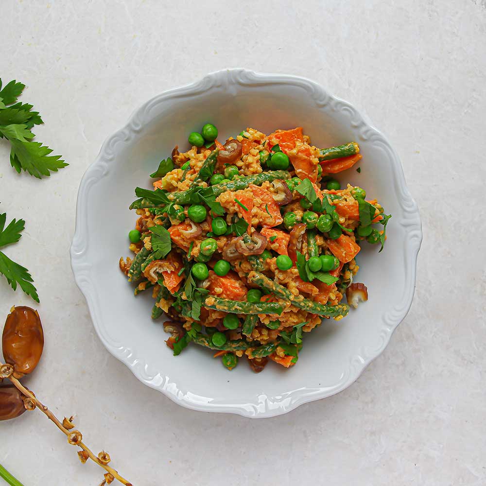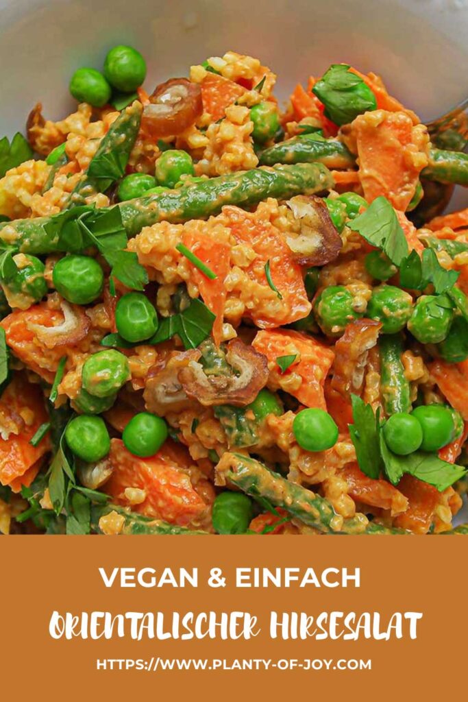 Dieser orientalische Hirse-Salat ist vegan, wunderbar cremig und angenehm sättigend. Der Salat eignet sich sehr gut als Vorspeise oder leichte Hauptmahlzeit. Das Rezept bietet viel Spielraum für Kreativität und kann nach Belieben abgewandelt und verändert werden. So wird aus einem einfachen Basis-Rezept ein vielseitiger und nährstoffreicher Genuss.