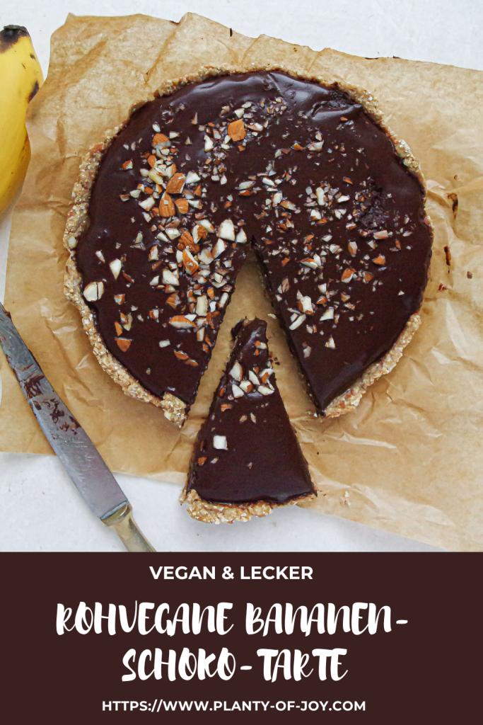 Diese rohvegane Bananen-Schoko-Tarte ist ein perfektes Sommer-Dessert, da sie nicht gebacken wird und gut gekühlt wie Bananen-Split in Kuchen-Form schmeckt. Sie ist nicht nur roh und vegan, sondern besteht aus vielen nährstoffreichen Zutaten. Ein Genussmoment für Körper und Seele. Die Zubereitung dauert außerdem kaum mehr als 15 Minuten und ihr braucht dafür nur wenige Zutaten, die ihr wahrscheinlich sogar bereits in eurem Vorratsschrank habt.